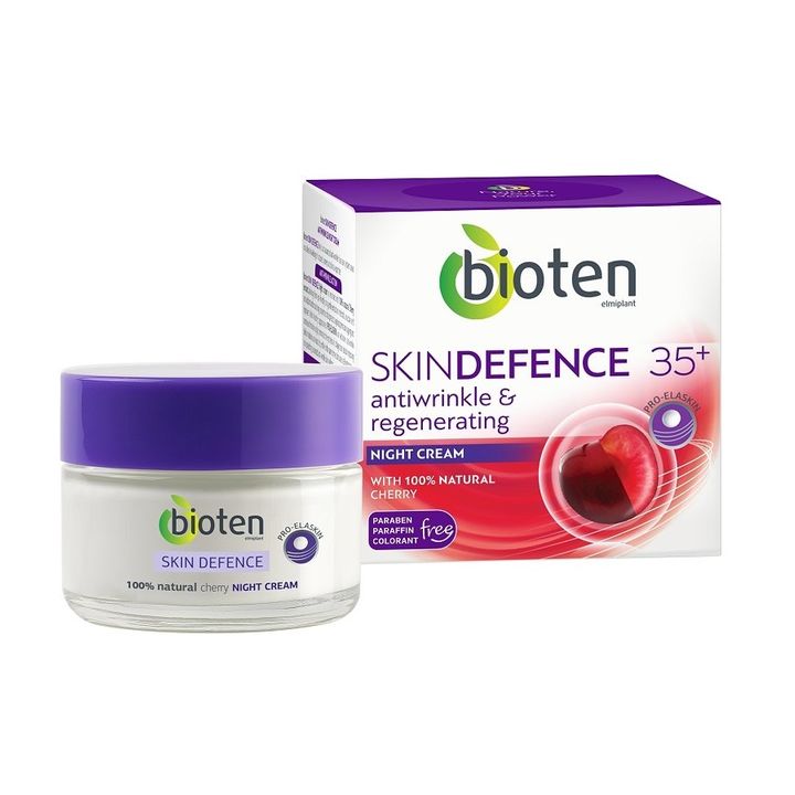 Bioten Skin Defence Antiwrinkle Night Cream e нощен възстановяващ крем за лице, който подхранва и защитава кожата от преждевременно стареене. Bioten Skin Defence Възстановяващ нощен крем за лице е обогатен с екстракт от череша, който е мощен антиоксидант и осигурява необходимата защита на вашия епидермис. Комплексът pro-elastin с морски произход , стимулира синтеза на колаген и еластин, подобрява хидратацията и еластичността на кожата, като едновременно с това подпомага клетъчната регенерация и осигурява защита против бръчки. Подходящ е за жени над 35 години.